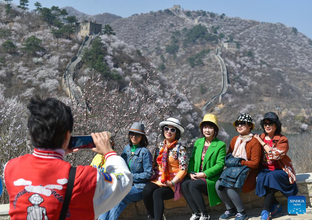 Tourists visit the Mutianyu section of the Great Wall in Beijing, capital of China, March 29, 2023. (Xinhua/Ju Huanzong)
