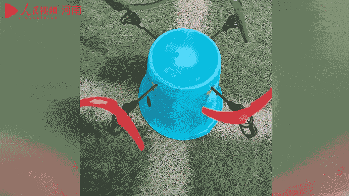 Zhang Jiantao works on a UAV converted from a trash can. (Photo/Media Convergence Center of Gushi county)