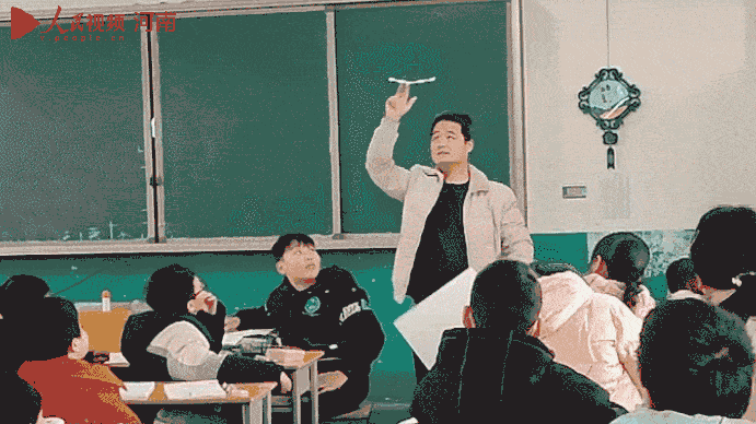 Zhang Jiantao explains the principles behind a paper plane to his students. (Photo/Media Convergence Center of Gushi county)
