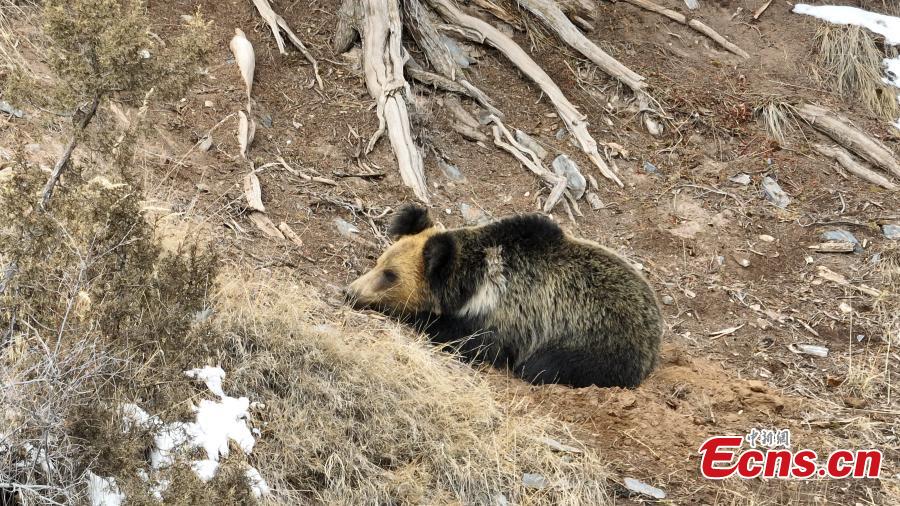 A brown bear is captured on camera emerging after months of hibernation at the Sanjiangyuan National Park, northwest China's Qinghai Province. (Photo/China News Service)