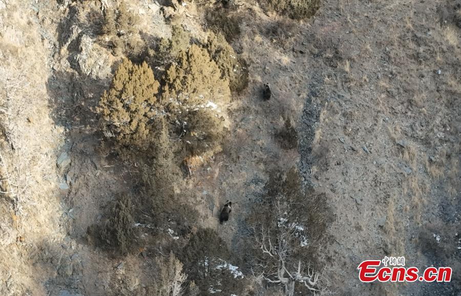 A brown bear is captured on camera emerging after months of hibernation at the Sanjiangyuan National Park, northwest China's Qinghai Province. (Photo/China News Service)