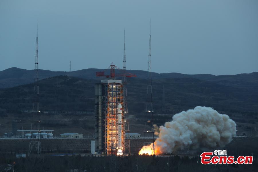 A Long March 2D carrier rocket carrying the PIESAT-1 constellation blasts off from the Taiyuan Satellite Launch Center in north China's Shanxi Province, March 30, 2023. (Photo: China News Service/Zheng Bin)