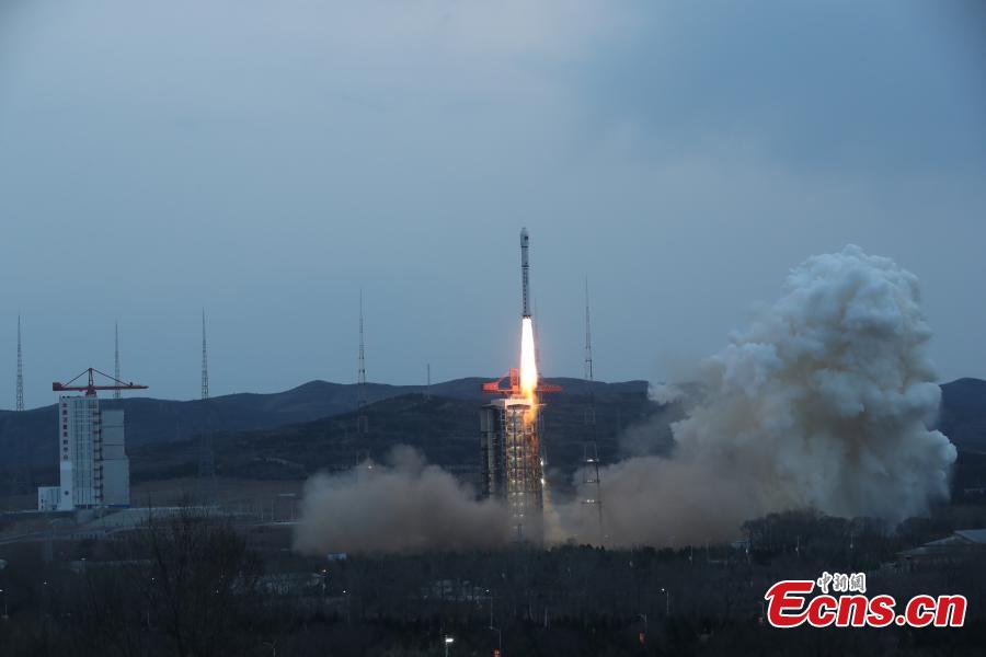 A Long March 2D carrier rocket carrying the PIESAT-1 constellation blasts off from the Taiyuan Satellite Launch Center in north China's Shanxi Province, March 30, 2023. (Photo: China News Service/Zheng Bin)