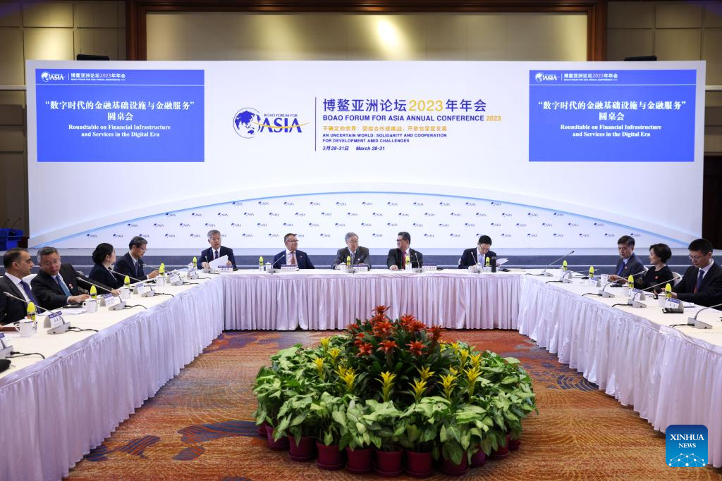 The Roundtable on Financial Infrastructure and Services in the Digital Era is held during the Boao Forum for Asia (BFA) Annual Conference 2023 in Boao, south China's Hainan Province, March 31, 2023. (Xinhua/Lyu Shuai)