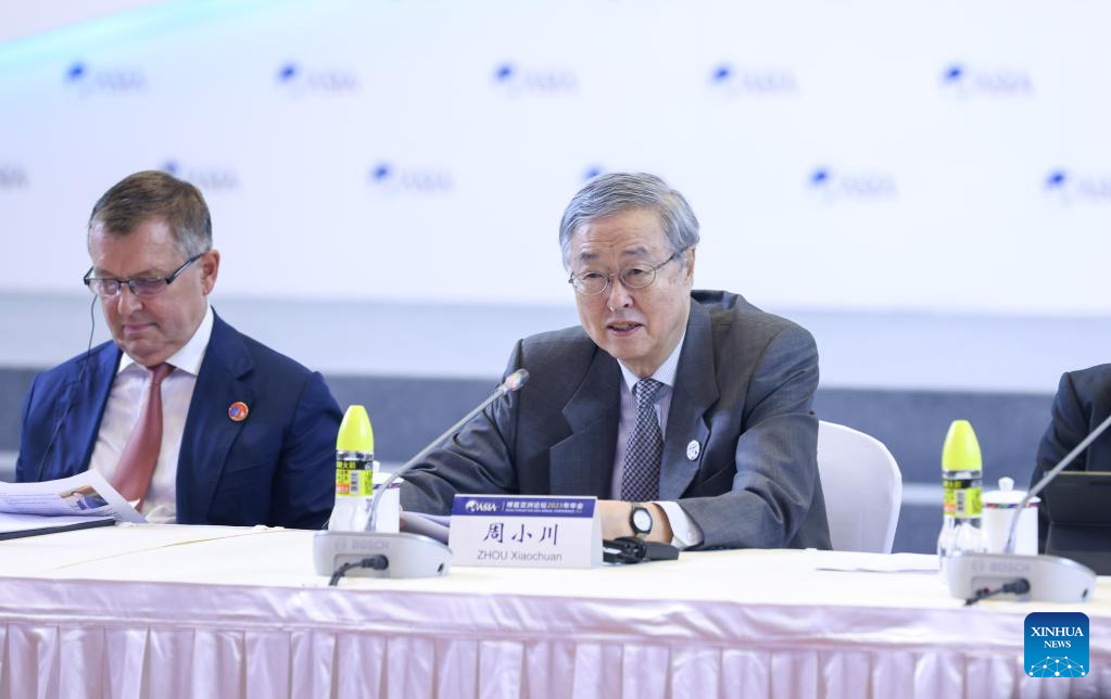 Zhou Xiaochuan, vice chairman of the Boao Forum for Asia (BFA), speaks at the Roundtable on Financial Infrastructure and Services in the Digital Era during the Boao Forum for Asia (BFA) Annual Conference 2023 in Boao, south China's Hainan Province, March 31, 2023. (Xinhua/Lyu Shuai)