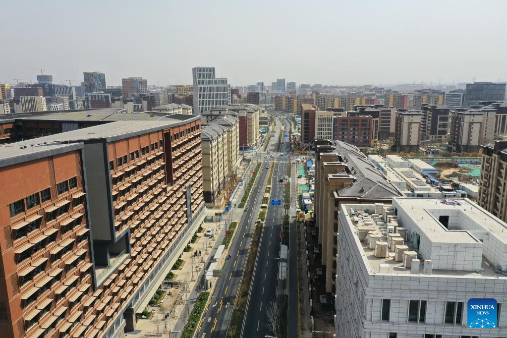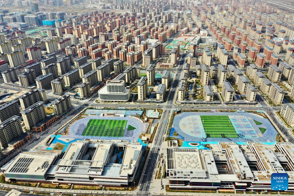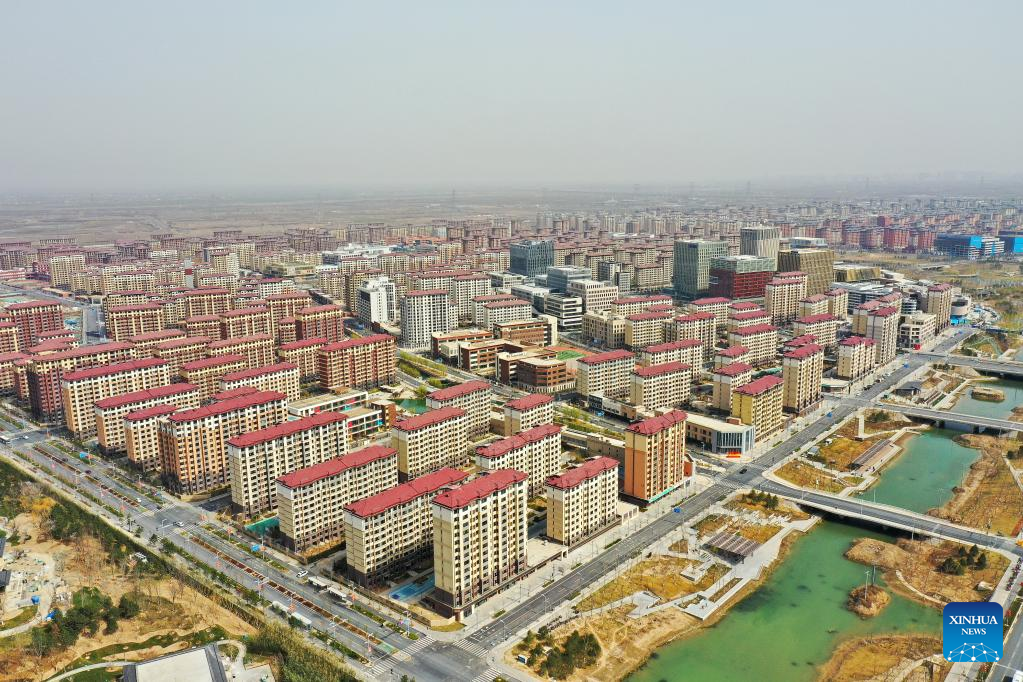 This aerial photo taken on March 21, 2023 shows the Rongxi area of Xiong'an New Area, north China's Hebei Province. Located about 100 km southwest of Beijing, the Xiong'an New Area has been designed as a major recipient of functions previously located in Beijing but which are not essential to its role as China's capital. (Xinhua/Mu Yu)