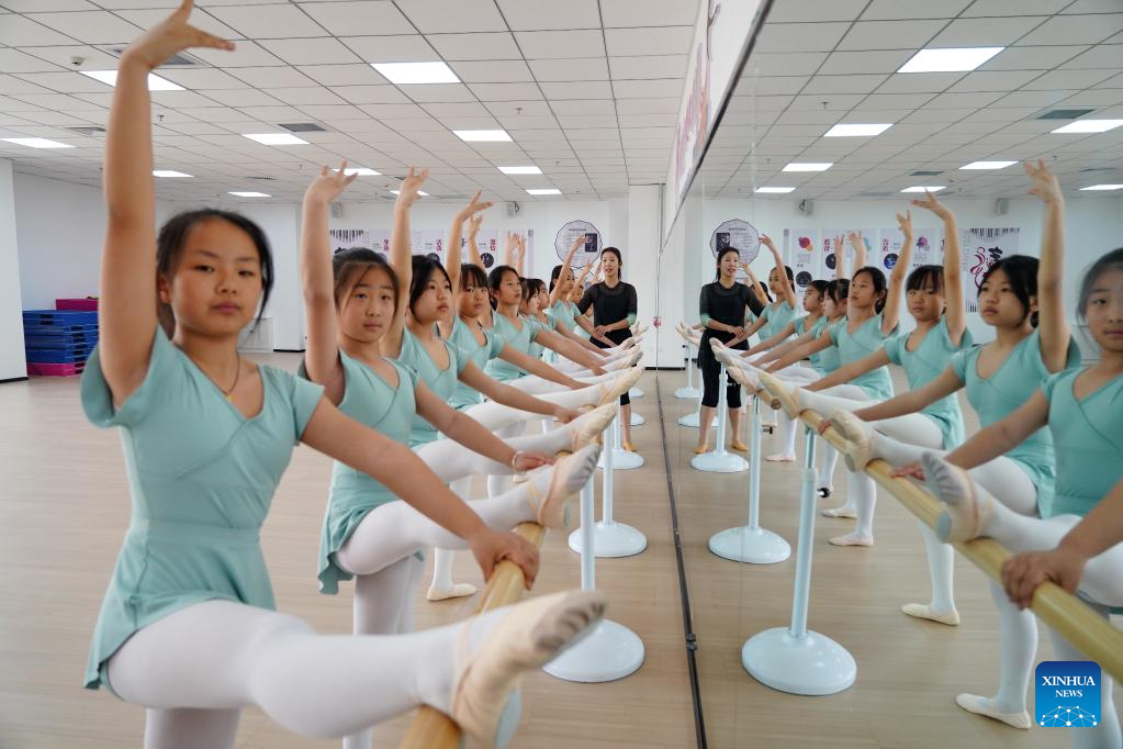 Children practice at a dancing room of Yunxi primary school in Xiong'an New Area, north China's Hebei Province, March 23, 2023. Located about 100 km southwest of Beijing, the Xiong'an New Area has been designed as a major recipient of functions previously located in Beijing but which are not essential to its role as China's capital. (Xinhua/Mu Yu)