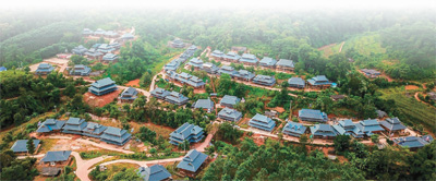 New traditional-style houses in Hebian village, Mengla county, Xishuangbanna Dai Autonomous Prefecture, southwest China’s Yunnan Province. (People’s Daily Overseas Edition/file photo)