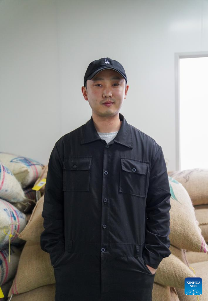 Jiang Jingtai roasts coffee beans in a workshop in Yanji, Yanbian Korean Autonomous Prefecture, northeast China's Jilin Province, April 4, 2023. The northeastern border city of Yanji in Yanbian Korean Autonomous Prefecture has witnessed a spark of coffee trend as over 540 coffee shops are registered in the 680,000 dwellers city in recent years. According to the data from Meituan Waimai, a major food delivery platform in China, Yanji ranked first in coffee consumption among counties (including county-level cities) in China from January to February this year. (Xinhua/Yan Linyun)