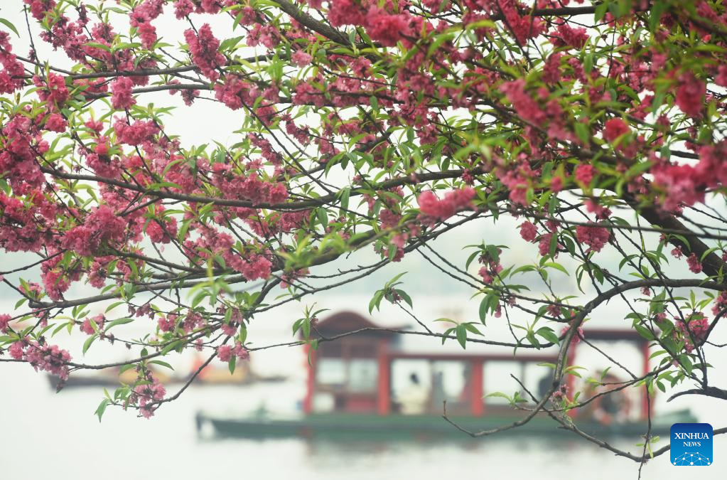Tourists take boats at the West Lake scenic area in Hangzhou, east China's Zhejiang Province, April 5, 2023. People come outdoors for leisure and enjoy the beauty of spring during the Qingming festival, also known as Tomb-Sweeping Day, on Wednesday. (Photo by Long Wei/Xinhua)
