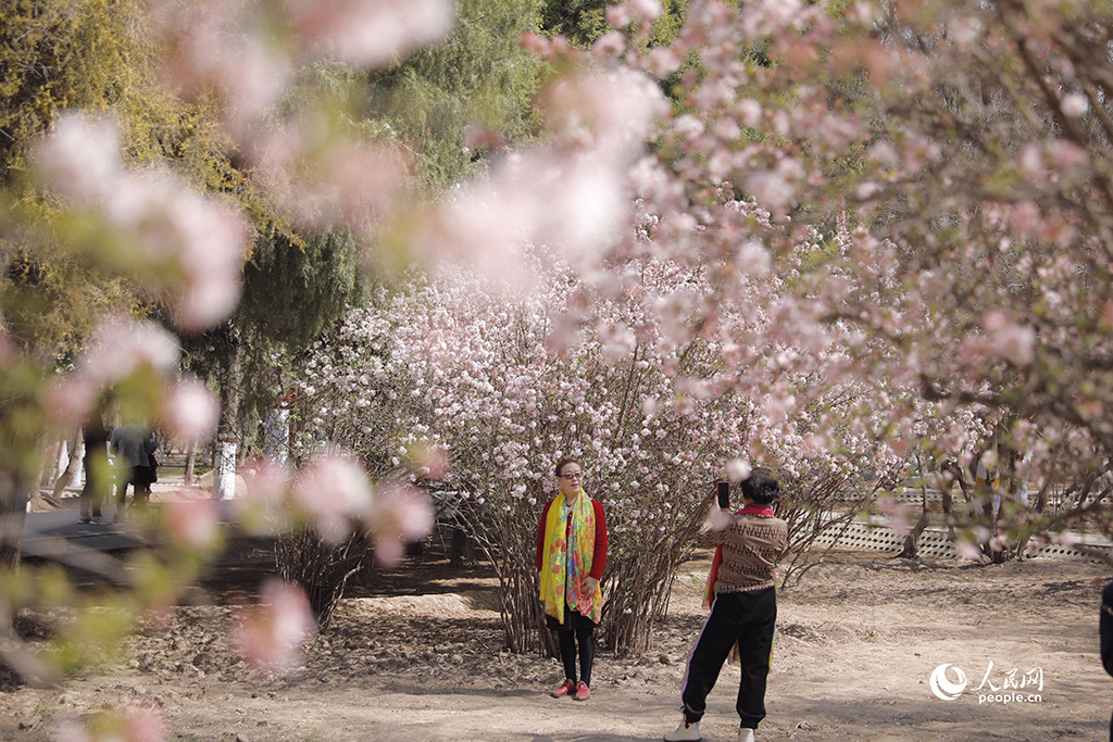 Photo shows visitors taking photos in Zhongshan Park in Yinchuan, capital of northwest China's Ningxia Hui Autonomous Region, March 29, 2023. (People's Daily Online/Yan Mengjie)