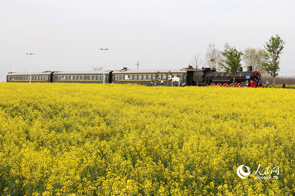 Rapeseed flower fields covering an area of 7,000 mu (466.67 hectares) attract tourists to rural revitalization demonstration zone in Baofeng county, central China's Henan Province, March 29, 2023. (People's Daily Online/Wang Yuxing)
