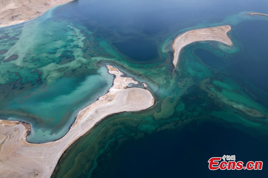 Aerial view shows the stunning scenery of Pangong Tso Lake at an average altitude of 4,242 meters in southwest China's Tibet Autonomous Region. (Photo: China News Service/Li Lin)
