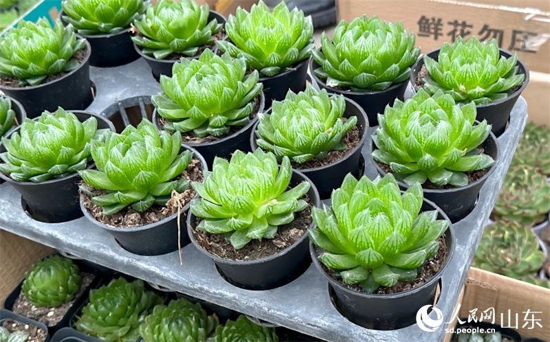 Photo shows?succulent?plants at the China Qingzhou flower and seedlings trading center in Qingzhou, east China’s Shandong Province. (People’s Daily Online/Qiao Shu)