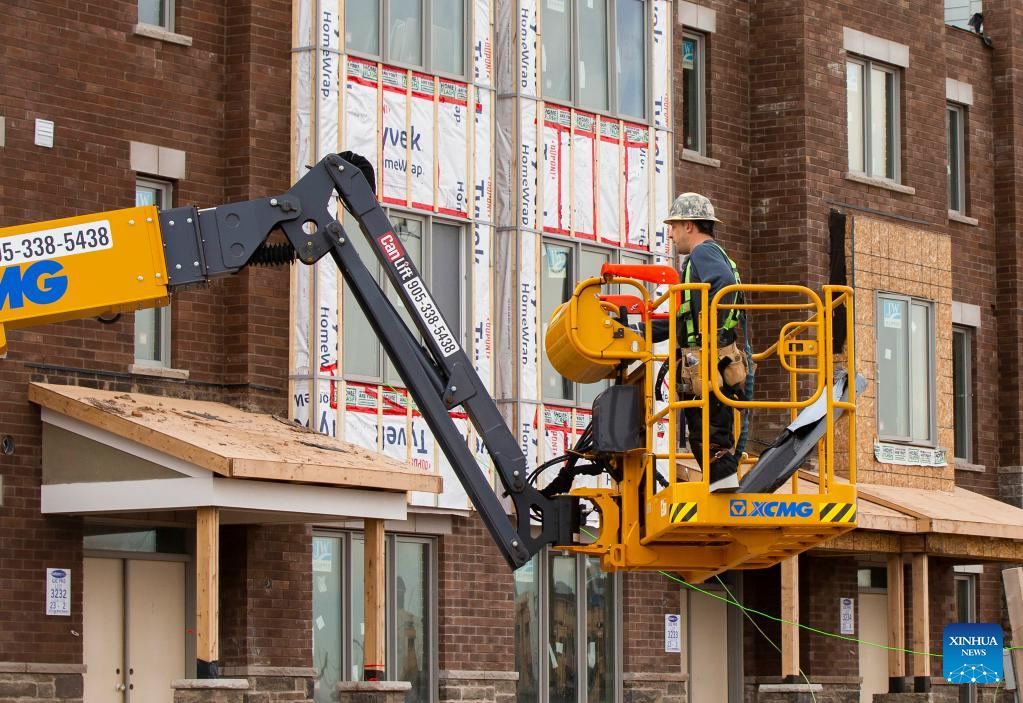 A man works on a construction site in Oakville, Ontario, Canada, on April 6, 2023. Canada's employment grew by 35,000, or 0.2 percent, in March, following little change in February and strong growth in January and December, Statistics Canada said on Thursday. (Photo by Zou Zheng/Xinhua)