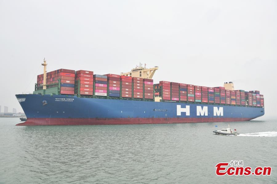 A patrol vessel sails next to a container ship, which prepares to dock at Tianjin Port, April 6, 2023. (Photo: China News Service/Tong Yu)