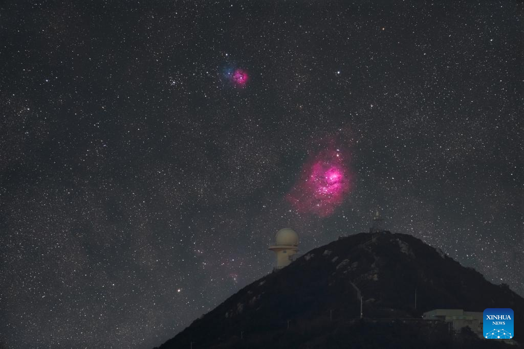 This photomontage taken on Nov. 29, 2022 shows the Shenzhen Astronomical Observatory against the starry sky in Shenzhen, south China's Guangdong Province. (Photo by Lu Miao/Xinhua)