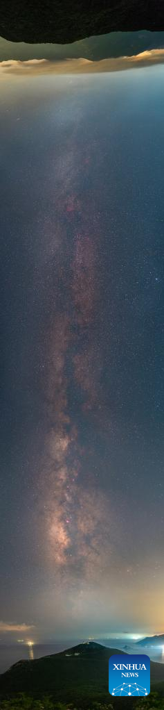 This photomontage taken on June 24, 2022 shows the Milky Way galaxy above Xichong community in Shenzhen, south China's Guangdong Province. (Photo by Tang Baihong/Xinhua)
