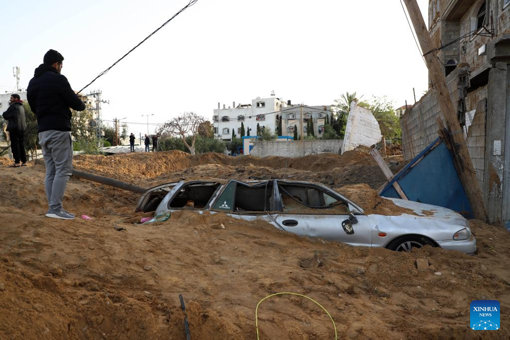 GAZA, April 7 (Xinhua) -- Magdy Abu Neama became homeless after his two-storey house in the Gaza Strip was severely damaged in the shock waves after Israeli warplanes hit a nearby target late Thursday night.