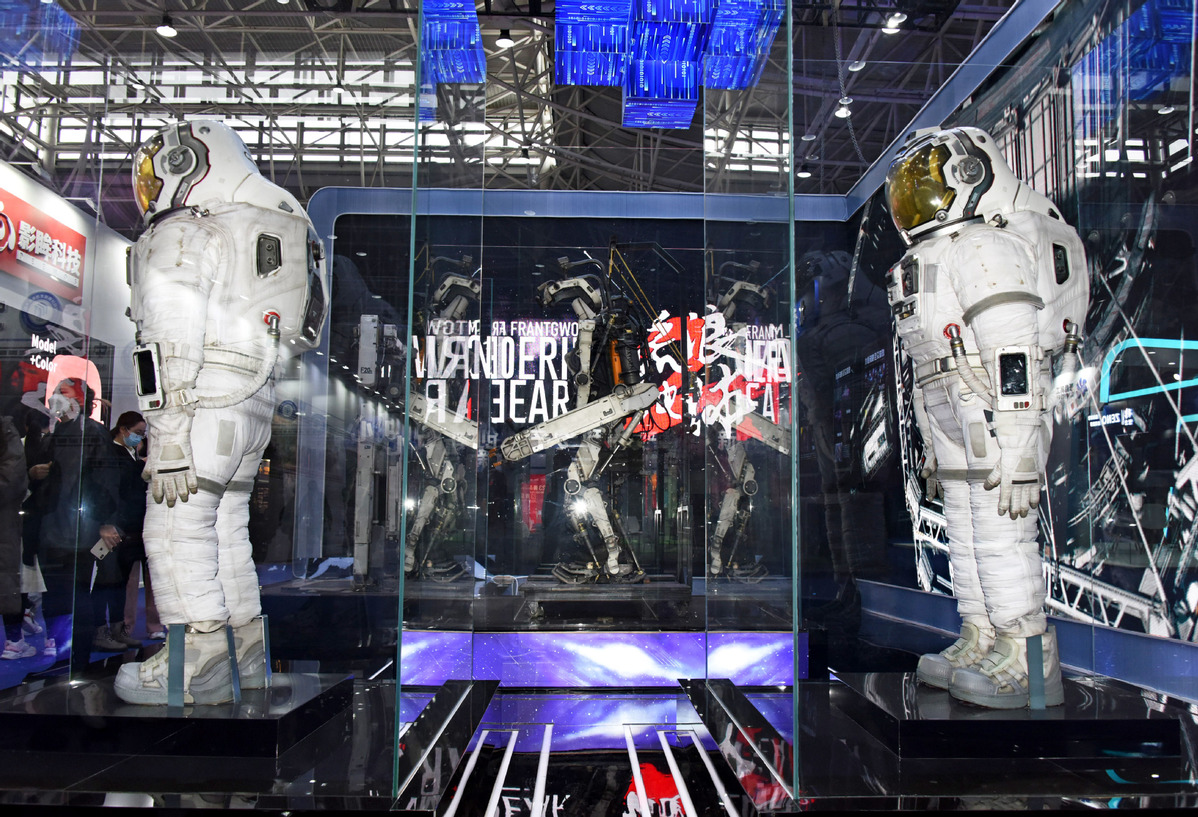 Visitors are seen at a science fiction film booth at the 2023 Qingdao Digital Culture Application Development Expo in Qingdao, Shandong province, on April 6, 2023. [Photo/Xinhua]