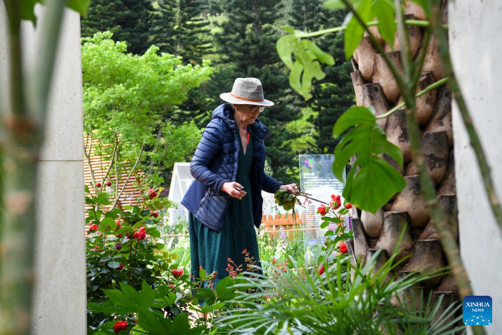 A British designer refines her work ahead of the Greater Bay Area Flower Show in Shenzhen, south China's Guangdong Province, April 7, 2023. The 10-day flower show was opened at Shenzhen Fairy Lake Botanical Garden on Saturday, attracting 80 exhibitors from 13 countries and regions including Australia, Britain, France, Japan, South Korea and the United States. (Xinhua/Liang Xu)