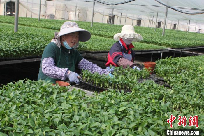 "I've been engaged in greenhouse vegetable production for more than a decade, and I buy seedlings from the company every year, because I trust the quality of the seedlings here," said Wang Jianjun, a grower from Danzhu township of the county. Planning to plant 8 mu (0.53 hectares) of green peppers this year, the man bought over 30,000 seedlings.