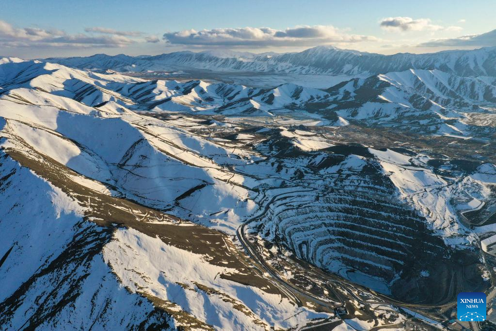 This aerial photo taken on April 9, 2023 shows a mine park in Koktokay, Fuyun County, northwest China's Xinjiang Uygur Autonomous Region. Koktokay in Xinjiang is rich in tourism resources. The international ski resort in Koktokay is very popular among tourists, which attracts snow lovers from all over the world to ski and enjoy the snow here. According to the ski resort, more than 128,000 visitors have visited the resort since March 2023. (Xinhua/Hu Huhu)