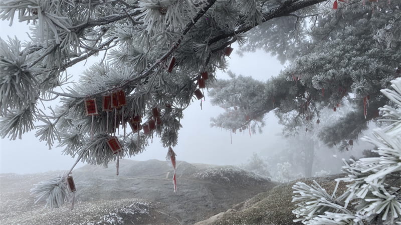 Photo shows rimes on Taishan Mountain in east China's Shandong Province. (Photo/Zhang Weitao)