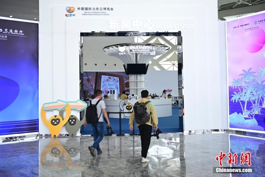Photo taken on April 10, 2023 shows the media center of the third China International Consumer Products Expo in Haikou, south China's Hainan Province, April 10, 2023. (Photo: China News Service/Tian Yuhao)