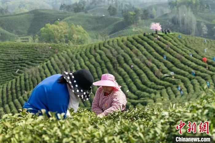 Workers pick spring tea leaves in Xinyang city, central China’s Henan Province. (Photo/Ouyang Guowei)