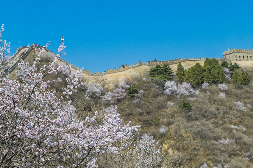 Photo shows blooming flowers at the Great Wall in Beijing. (Photo/Wang Shiqi)