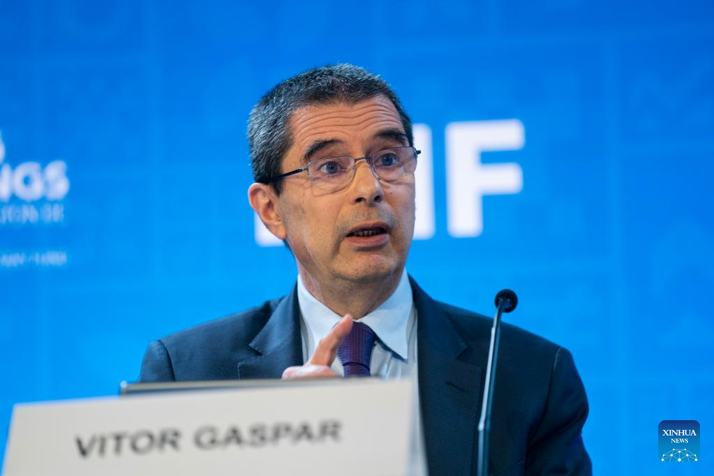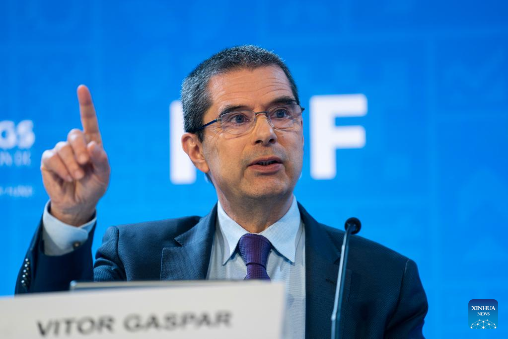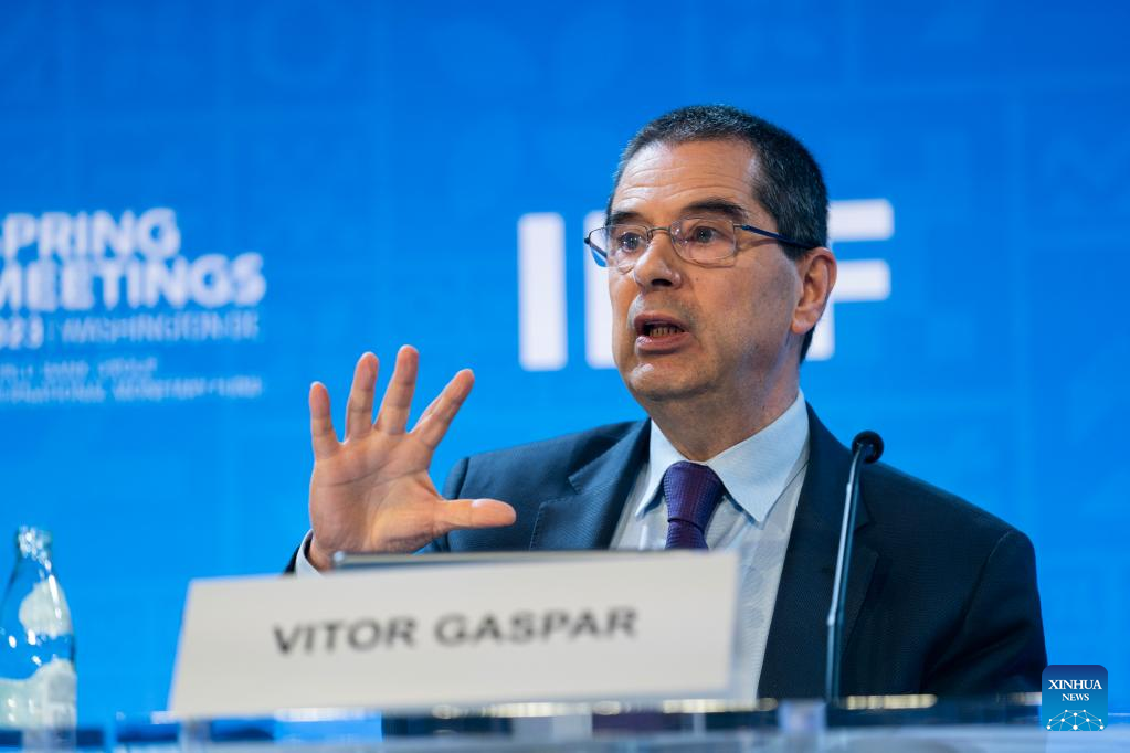 Vitor Gaspar, director of the International Monetary Fund (IMF)'s fiscal affairs department, speaks at a press briefing in Washington, D.C., the United States, on April 12, 2023. The International Monetary Fund (IMF) on Wednesday urged fiscal policymakers to adopt tighter fiscal policies to help central banks fight inflation. (Xinhua/Liu Jie)