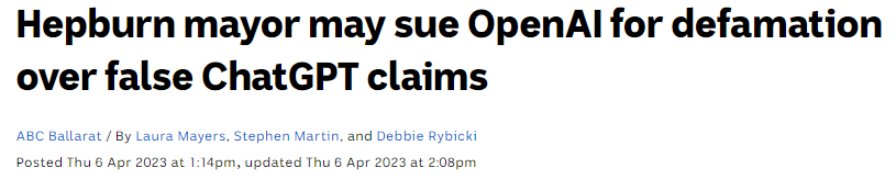A regional Australian mayor Brian Hood said he's preparing to sue OpenAI as the company’s ChatGPT incorrectly described him as a guilty party in a bribery scandal.