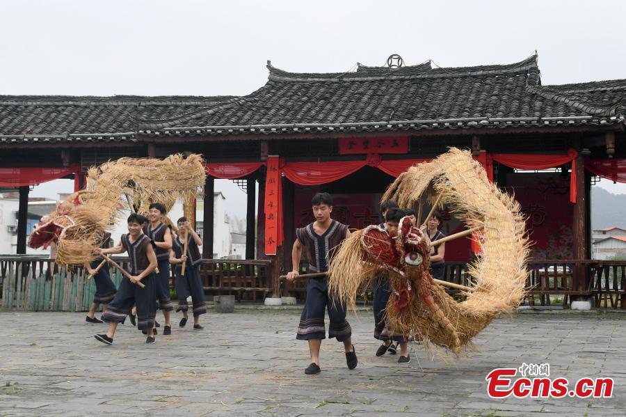 Straw dragon dance promotes Mulam ethnic tradition in Guangxi (2)