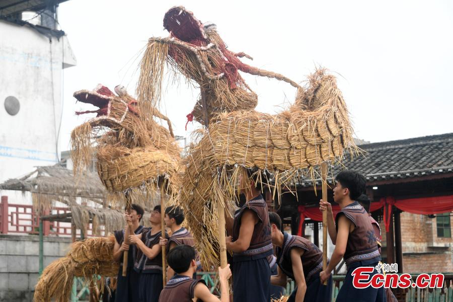 Straw dragon dance promotes Mulam ethnic tradition in Guangxi (4)