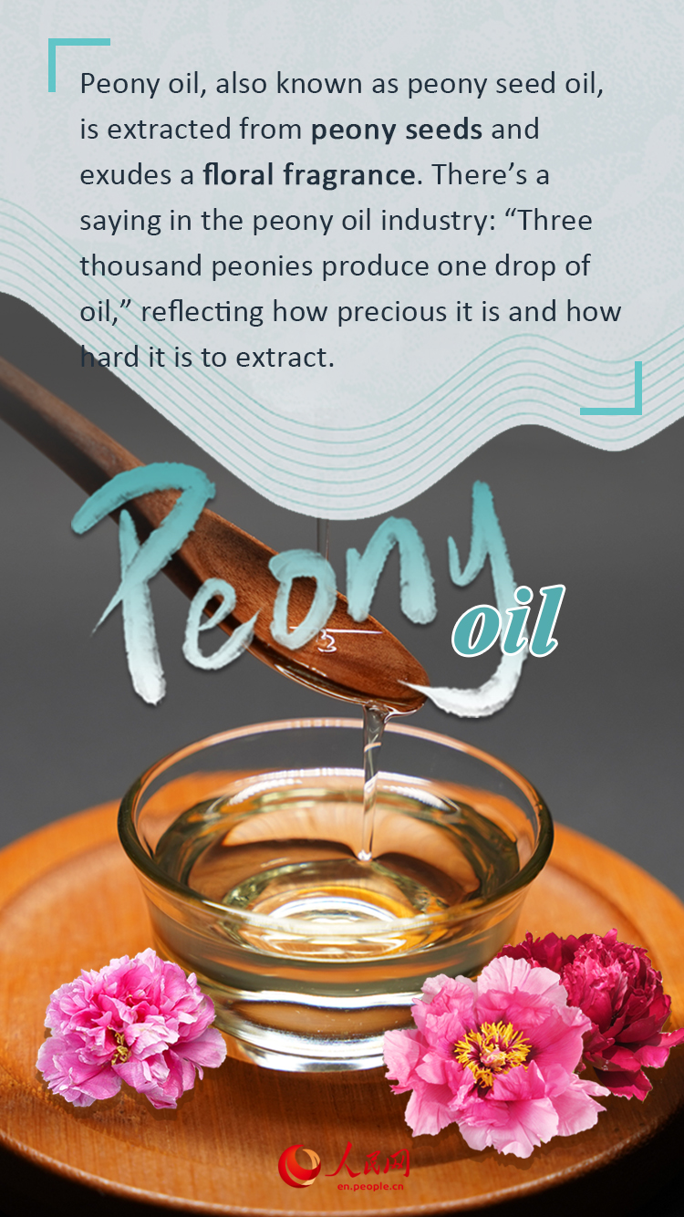 Peony oil, also known as peony seed oil, is extracted from peony seeds and exudes a floral fragrance. There’s a saying in the peony oil industry: “Three thousand peonies produce one drop of oil,” reflecting how precious it is and how hard it is to extract.