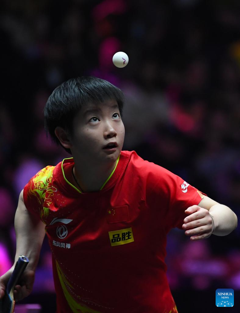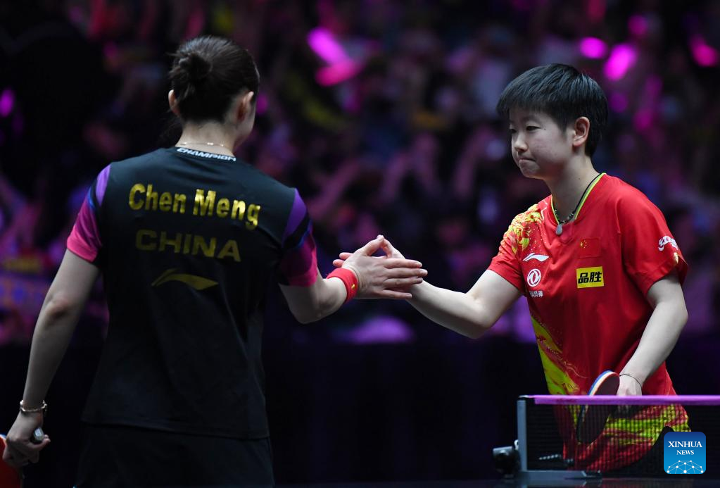 In the semifinal, world No. 1 Sun Yingsha took control of the match before overwhelming Olympic champion Chen Meng 11-5, 11-5, 11-7, 11-6 in one hour and 16 minutes.