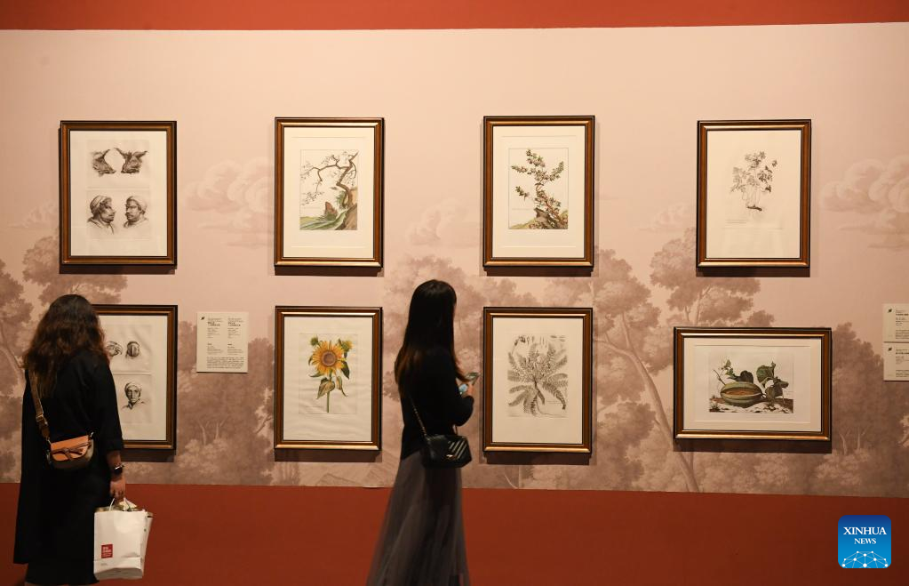 Visitors look at engraving works at the Hangzhou Pavilion of the Meet You Museum in Hangzhou, East China's Zhejiang Province, April 14, 2023. The Hangzhou Pavilion of the Meet You Museum officially opened on Friday. Two exhibitions featuring artworks of well-known Western artists including Vincent van Gogh and Claude Monet were launched for the public on the opening day. (Xinhua/Weng Xinyang)