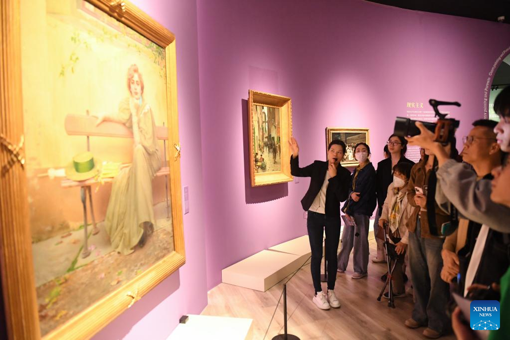Visitors look at "Dreams" by Vittorio Corcos at the Hangzhou Pavilion of the Meet You Museum in Hangzhou, East China's Zhejiang Province, April 14, 2023. The Hangzhou Pavilion of the Meet You Museum officially opened on Friday. Two exhibitions featuring artworks of well-known Western artists including Vincent van Gogh and Claude Monet were launched for the public on the opening day. (Xinhua/Weng Xinyang)