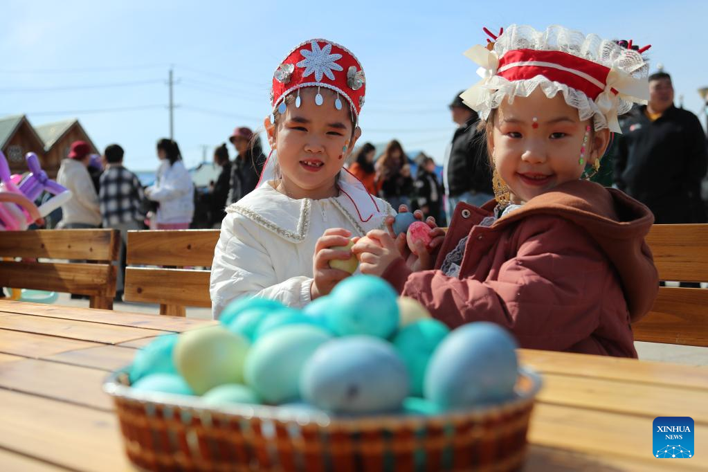 Children of Russian ethnic group celebrate the Russian Easter festival in Enhe Township of Hulun Buir, north China's Inner Mongolia Autonomous Region, April 16, 2023. The Russian Easter festival celebrated by people of Russian ethnic group has been listed as China's national intangible cultural heritage. Various feasts and activities are held during the week-long celebration. (Xinhua/Wang Kaiyan)
