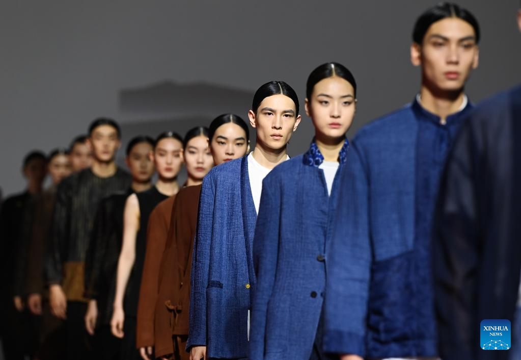 Models present creations during the fashion week at the third China International Consumer Products Expo (CICPE) in Haikou, capital city of south China's Hainan Province, on April 11, 2023. The fashion week, scheduled from April 10 to 15, concluded on Saturday in Haikou. (Xinhua/Pu Xiaoxu)