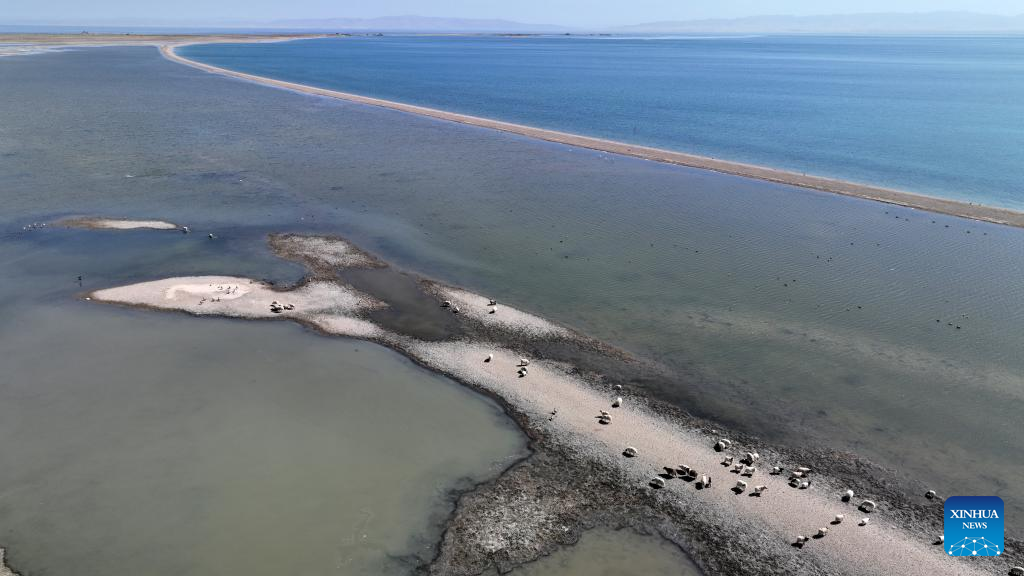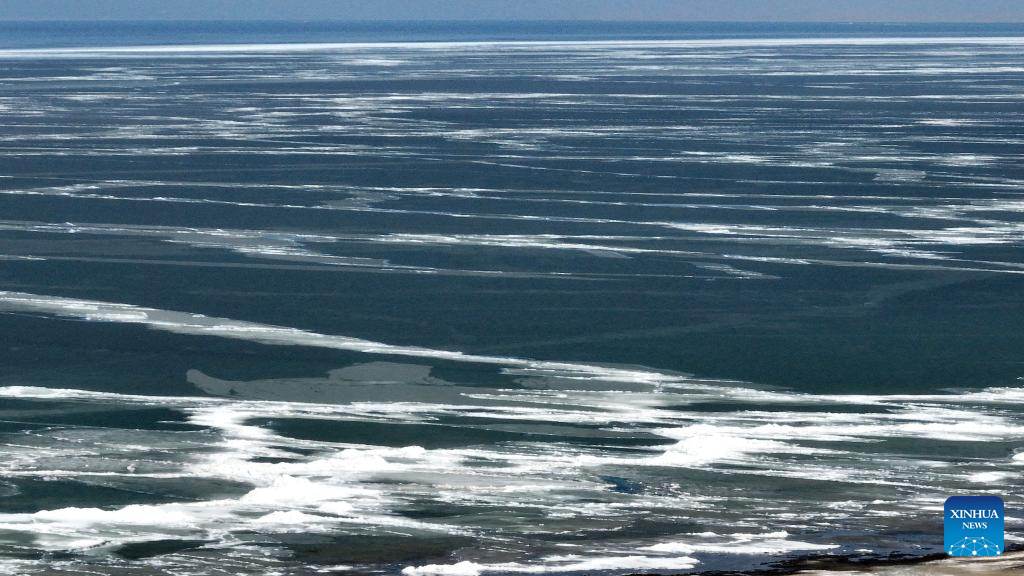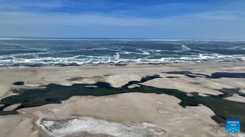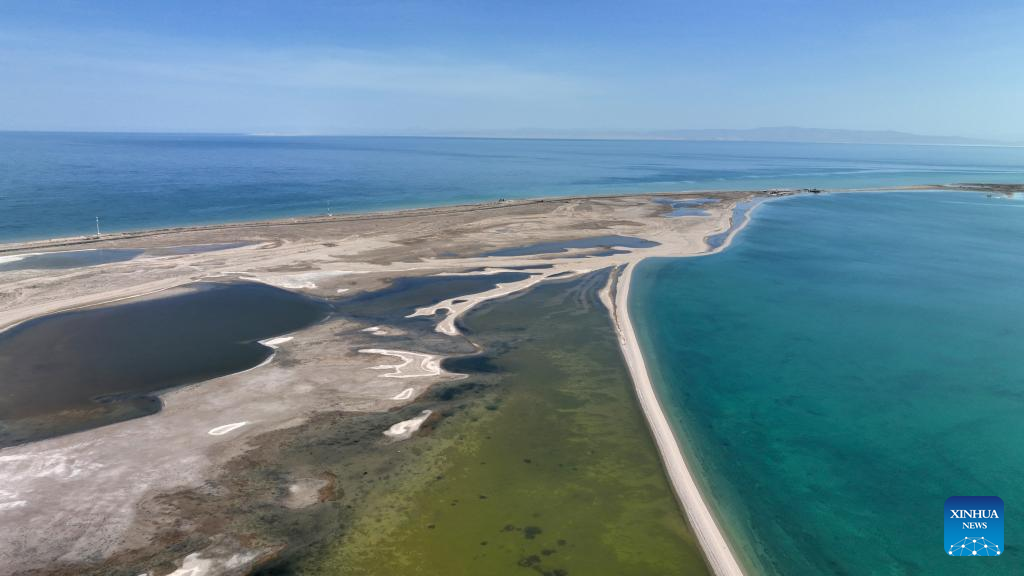 This aerial photo taken on April 15, 2023 shows a view of the Qinghai Lake in northwest China's Qinghai Province. (Xinhua/Zhang Long)
