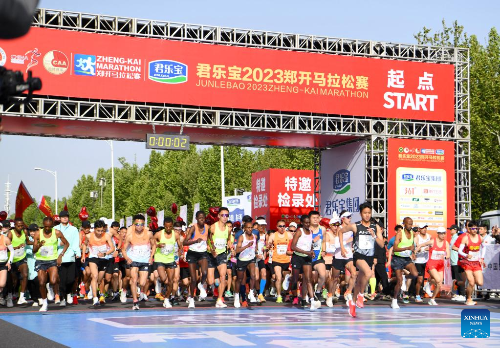 Participants start at 2023 Zheng-Kai Marathon in Zhengzhou, capital of central China's Henan Province, April 16, 2023. (Xinhua/Hao Yuan)