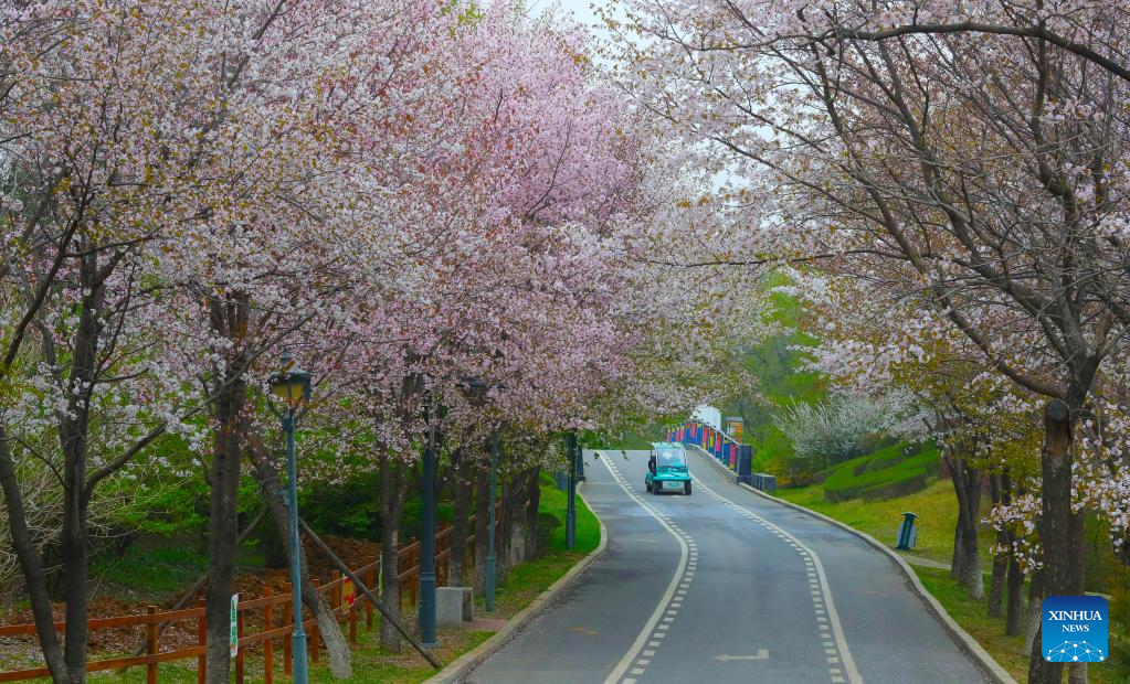 Visitors take a ride in Shenyang Expo Garden in Shenyang, northeast China's Liaoning Province, April 17, 2023. (Xinhua/Yang Qing)