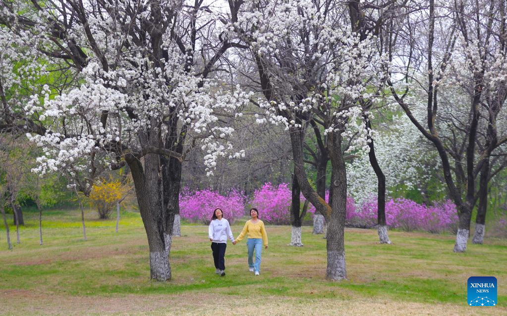 Visitors walk in Shenyang Expo Garden in Shenyang, northeast China's Liaoning Province, April 17, 2023. (Xinhua/Yang Qing)