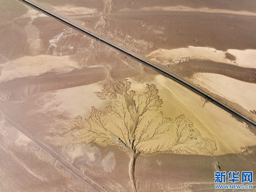 Aerial photo taken on April 8, 2023 shows the "tree of the earth" in Ngari prefecture, southwest China's Xizang Autonomous Region. (Xinhua/Cao Zhiqing)