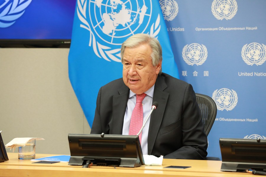 UN Secretary-General Antonio Guterres speaks during a press conference at the UN headquarters in New York, Aug. 3, 2022. (Xinhua/Xie E)