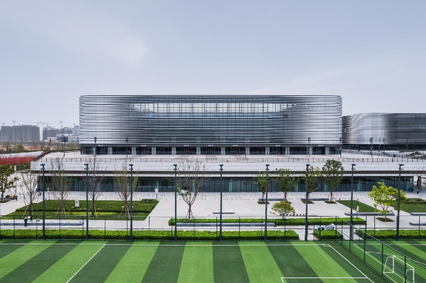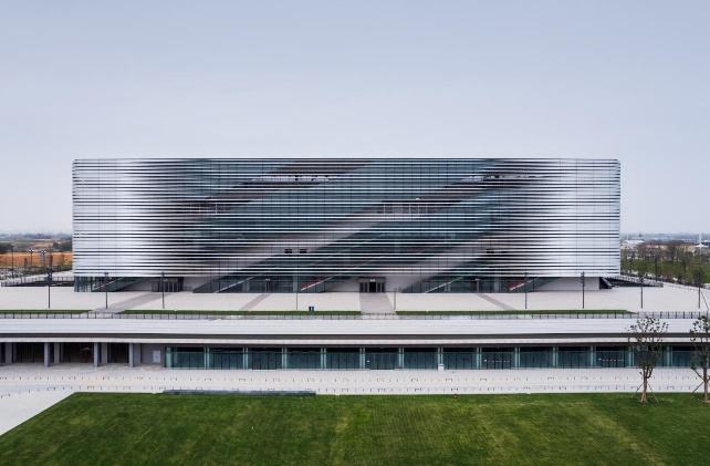 Jianyang Cultural and Sports Centre Gymnasium is the warm-up and competition venue for judo events. The exterior design of the 18,500 square-meter venue abstracts and simplifies the traditional craft of bamboo over porcelain.