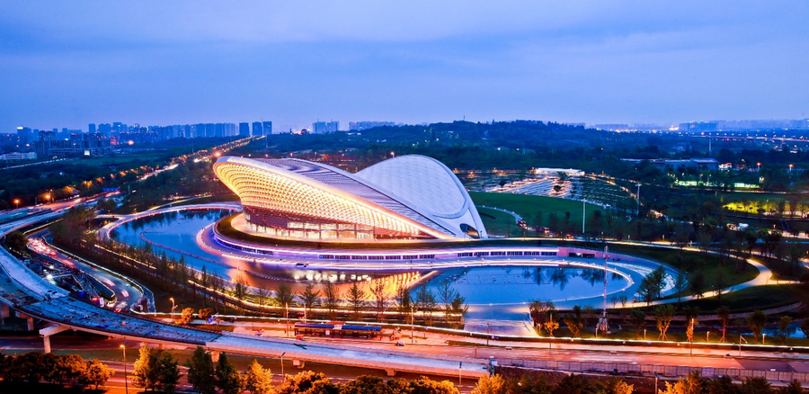 The futuristic-feeling High-tech Zone Sports Center Gymnasium was inspired by the Sichuan Brocade, leaving people with a deep impression of its comfort curves. The venue that already staged the World Team Table Tennis Championships covers a floor area of 82,732 square meters, with one floor of large space, five floors above the ground and one floor under the ground. During the Games, it will serve as a warm-up and competition venue for table tennis events.