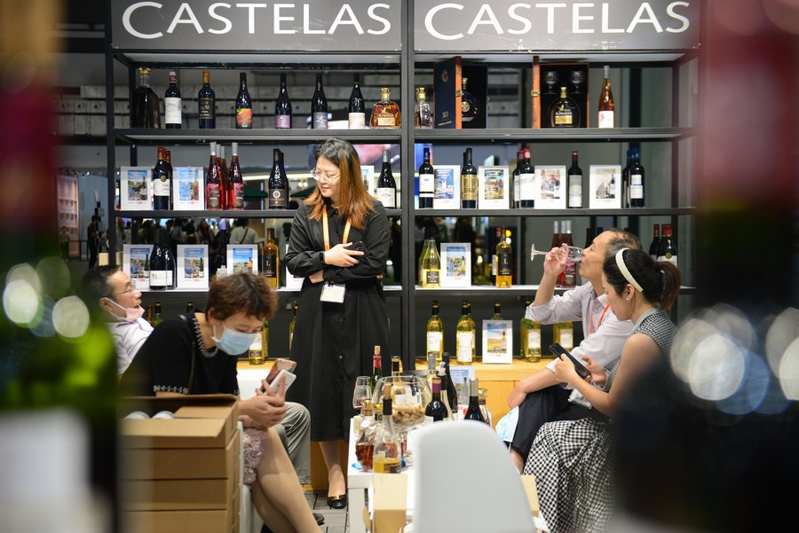 Visitors taste French wines at the third China International Consumer Products Expo (CICPE) in Haikou, south China's Hainan Province, April 13, 2023. (Xinhua/Wang Zecong)